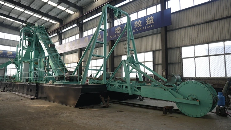 Щоб забезпечити точне виробництво обладнання для видобутку золота, збагачення та промивання руди, а також різноманітних інженерних суден, наша фабрика оснащена обладнанням для обробки металу, включаючи великі ріжучі верстати з ЧПК, розточувальні фрезерні верстати з ЧПУ та прецизійні токарні верстати для точного формування компонентів. У нас також є зварювальне обладнання, таке як автоматичні зварювальні апарати під флюсом, щоб забезпечити високоміцне зварювання корпусів кораблів і сталевих конструкцій. Крім того, ми оснащені обладнанням для обробки поверхонь, таким як великі майстерні для піскоструминної обробки та видалення іржі, а також лінії розпилення для покращення стійкості обладнання до корозії. Складальний цех оснащений професійним інструментом, включаючи гідравлічні платформи для введення в експлуатацію та тестери динамічного балансу, щоб гарантувати кваліфіковану роботу готових машин, утворюючи повний виробничий ланцюг від обробки металу, зварювання та обробки поверхні до остаточного складання та введення в експлуатацію.